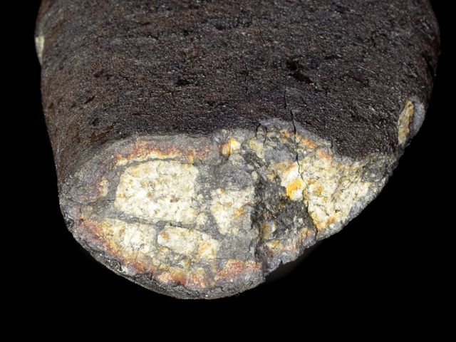 History: At 9:22 a.m. (local time) on February 15, 2013, a bright fireball was seen by numerous residents in parts of the Kurgan, Tyumen, Ekaterinburg and Chelyabinsk districts. Images of the fireball were captured by many video cameras, especially in Chelyabinsk. Residents of the Chelyabinsk district heard the sound of a large explosion. The impact wave destroyed many windows in Chelyabinsk and surrounding cities. Many people were wounded by glass fragments. A part of the roof and a wall of a zinc plant and a stadium in Chelyabinsk were also damaged. Numerous (thousands) stones fell as a shower around Pervomaiskoe, Deputatsky and Yemanzhelinka villages ~40 km S of Chelyabinsk. The meteorite pieces were recovered and collected out of snow by local people immediately after the explosion. The snow cover was about 0.7 m deep. The falling stones formed holes surrounded by firm snow.