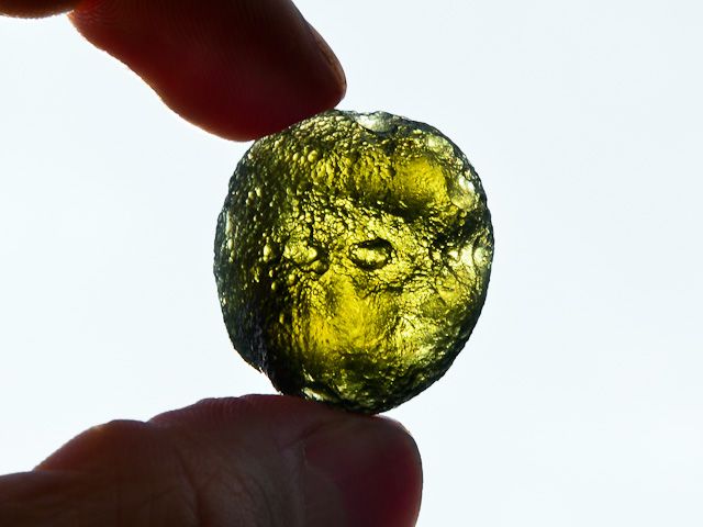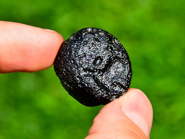 Moravian 9.0 g no damage moldavite - disc! Simply perfect medium sized gem in excellent proportions and typical „Moravian“ fancy and unusual surface sculputring. Moravian Moldavite is rarest of all Moldavites. Moravian Moldavites are found in a separate strew field from the Bohemian stones, between towns of Trebic, Znojmo and Brno.