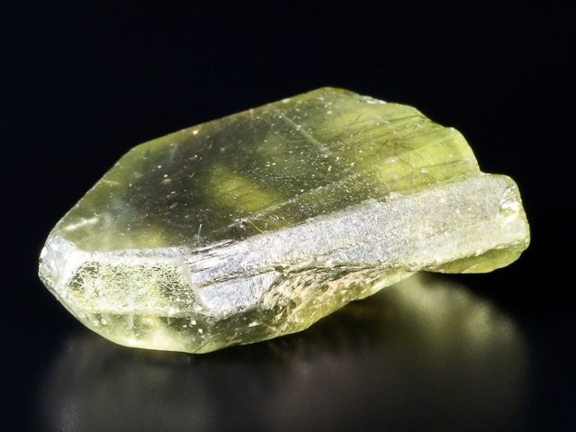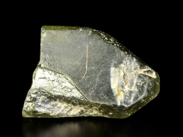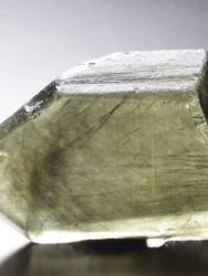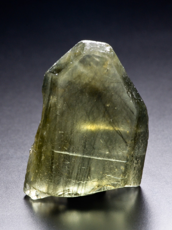 Big terminated olivine (peridote) crystal. It is a gemstone variety of the mineral component of the transition series of olivine forsterite - fayalite. Crystal contains rare inclusions of ludwigite (small dark crystals).
