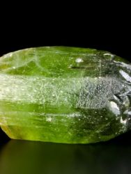 Big terminated olivine (peridote) crystal. It is a gemstone variety of the mineral component of the transition series of olivine forsterite - fayalite. Crystal contains rare inclusions of ludwigite (small dark crystals). No damage.