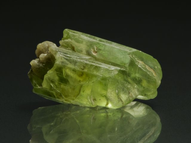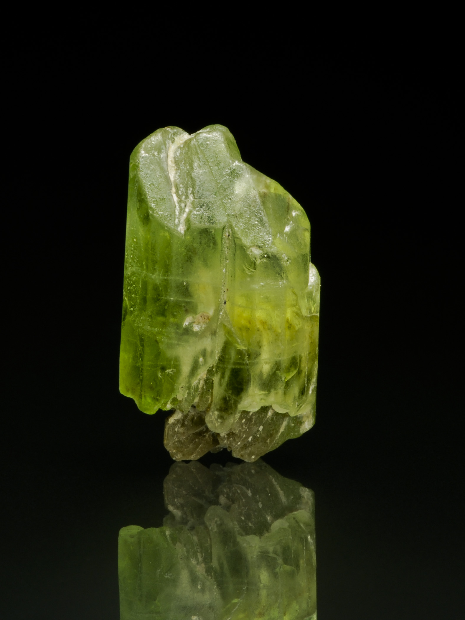 Big terminated olivine (peridote) crystal. It is a gemstone variety of the mineral component of the transition series of olivine forsterite - fayalite. This crystal measures 2,5 cm - classic and cute material from Suppat.