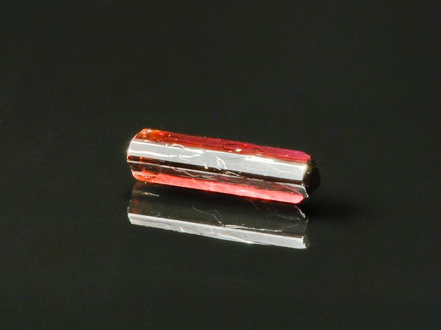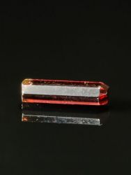 Big gemmy 0,6 ct painite crystal from the type locality Ohngaing. Painite is a very rare calcium, zirconium, aluminum borate unique to several localities in the Mogok area of Burma. This euhedral crystal is from the Type Locality. It is highly lustrous, terminated, reddish-brown and is translucent on the edges. Very little of this very rare material has come out recently.