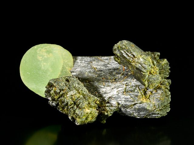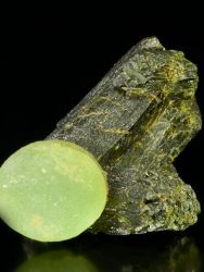 TOP estetická drúza kulovitého prehnitu světle zelené barvy společně s tmavými a ukončenými krystaly epidotu.TOP estetická drúza kulovitého prehnitu světle zelené barvy společně s tmavými a ukončenými krystaly epidotu. Prehnitová koule má v průměru cca 2,5 cm! Jedná se o zajímavý sbírkový materiál v neskutečně estetickém provedení. Nepoškozený vzorek.