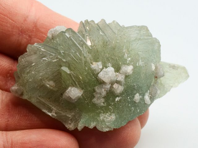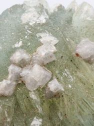 Nice example of translucent prehnite crystals from Merelani. These recently discovered examples are probably the finest prehintes ever found, particularly given their translucency and incredible color. Small fragment od Tanzanite on the back side. fckJH