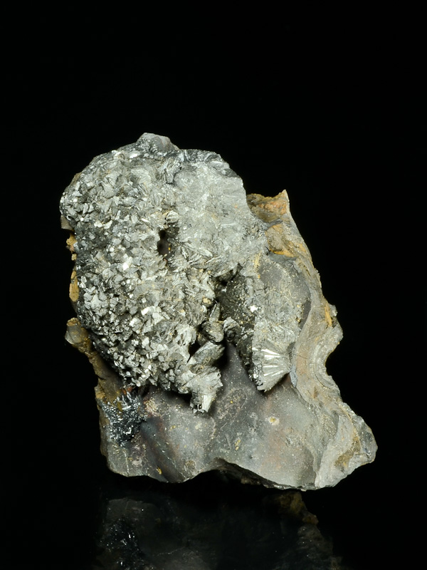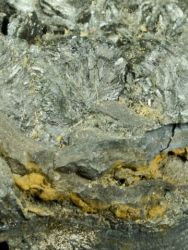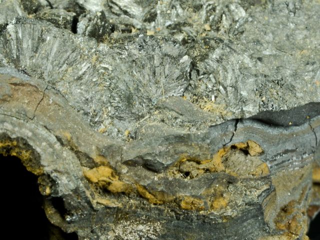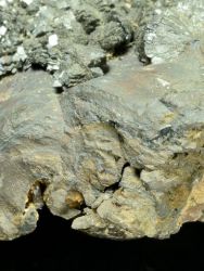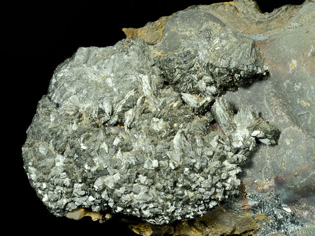 Rounded aggregates of dark, metallic polianite (pyrolusite pseudomorphs after manganite) up to 6 mm.Rounded aggregates of dark, metallic polianite (pyrolusite pseudomorphs after manganite) up to 6 mm. The surface of the aggregates show many individual crystal faces about 2 mm each.
