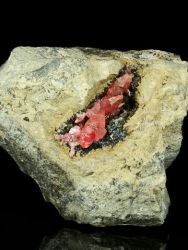 Velice slušná podložková ukázka krystalů rodochrozitu z peruánské lokality Uchucchacua.Velice slušná podložková ukázka krystalů rodochrozitu z peruánské lokality Uchucchacua. Středně velká ukázka velmi čistých hezky vyvinutých krystalů (skalenoedrů) růžového rodochrozitu na tmavé podložce. Velikost lesklých ukončených krystalů dosahuje až 16 mm.
