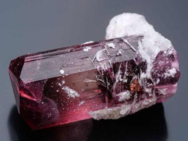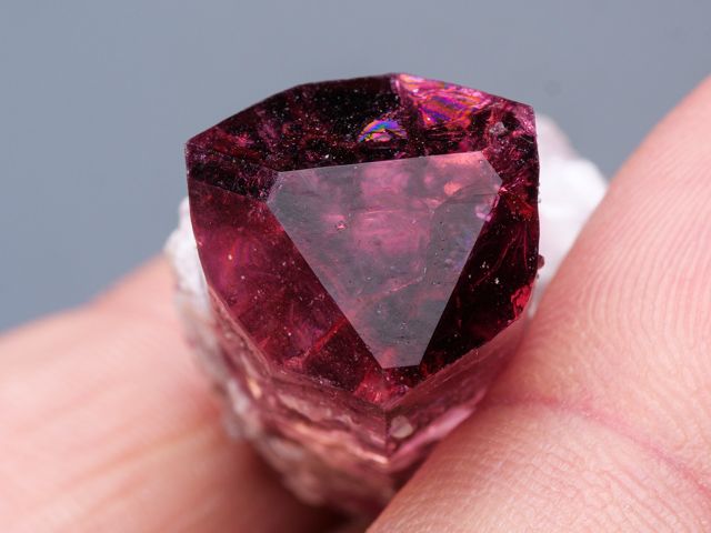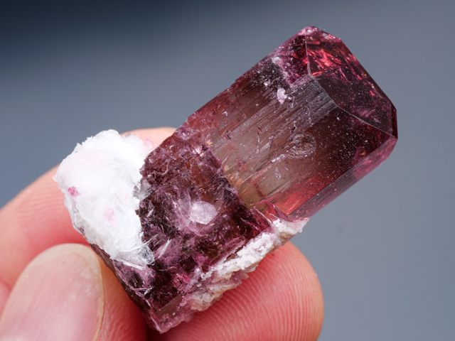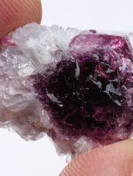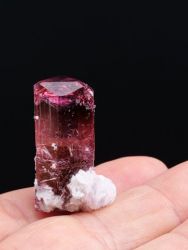 This gemmy, evenly-colored pink crystal is a non classic color and style for the locality.This gemmy, evenly-colored pink crystal is a non classic color and style for the locality. However, few truly killer thumbnails have come out compared to larger pieces, and to obtain one of this quality with some distinction or association (such as the mica associated), is quite difficult. No damage.