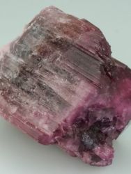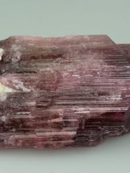 A single crystal specimen of 'Rubellite' measuring to 8.3 cm displaying nice termination and striated prism faces, the colour light to a rich deep pink. From the Ilapa area in Madagascar.