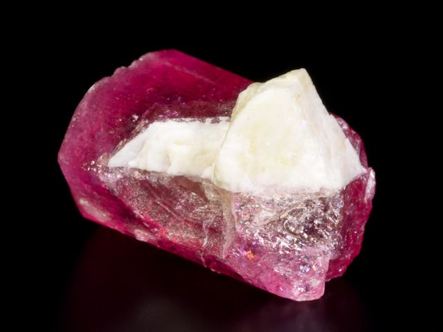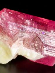 A beautiful Rubellite with albite crystal from the famous find at the Jonas Mine.A beautiful Rubellite with albite crystal from the famous find at the Jonas Mine. The Tourmaline is the rich cranberry red colour and transparent. The crystal is terminated, and gemmy. This is your opportunity to own a small but beautiful Tourmaline from this amazing find.