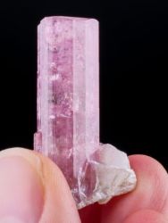 This gemmy, evenly-colored pink crystal is a non classic color and style for the locality.This gemmy, evenly-colored pink crystal is a non classic color and style for the locality. However, few truly killer thumbnails have come out compared to larger pieces, and to obtain one of this quality with some distinction or association (such as the mica associated), is quite difficult.