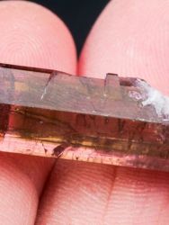 This gemmy, evenly-colored dark pink crystal is a classic color and style for the locality.This gemmy, evenly-colored dark pink crystal is a classic color and style for the locality. However, few truly killer thumbnails have come out compared to larger pieces. 1 small chip on termination.