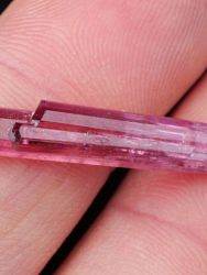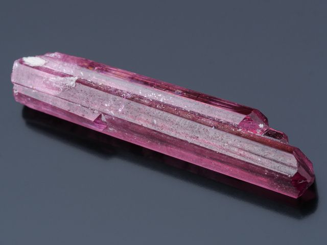 Krásný a estetický ukončený krystal rubelitu z famózní lokality Malkhan. Jedná se o turmalín elbaitové řady z pegmatitů Sibiře. Lesklý krystal velmi čistého rubelitu bez poškození.