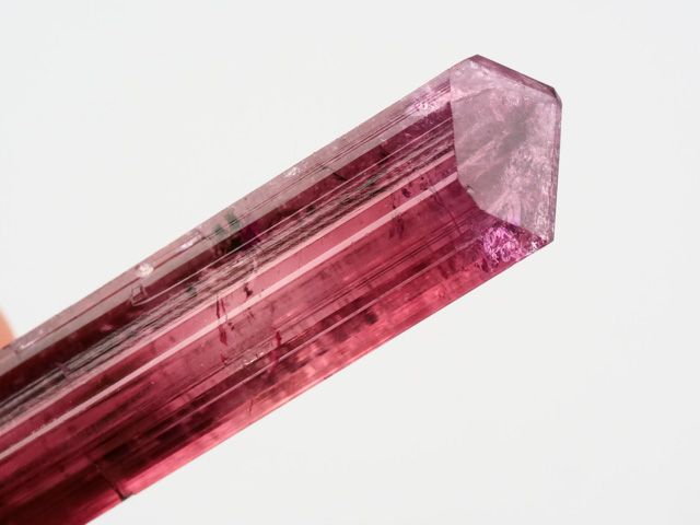 A fine example of the tourmaline variety rubelitte from a find in 2012. It has a beautiful, pink/red color to it. The crystal is highly lustrous, and terminated.A fine example of the tourmaline variety rubelitte from a find in 2012. It has a beautiful, pink/red color to it. The crystal is highly lustrous, and terminated.