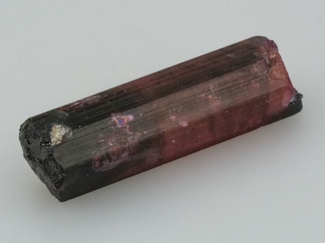Krásný ukončený krystal lesklého rubelitu z Madagaskaru. Jedná se o turmalín elbaitové řady. Lesklý krystal příjemné tmavě červeno hnědo oranžové barvy bez poškození (jen ukončení nemá tento krystal dokonale dovyvinuté).