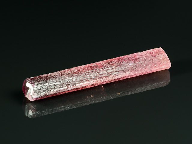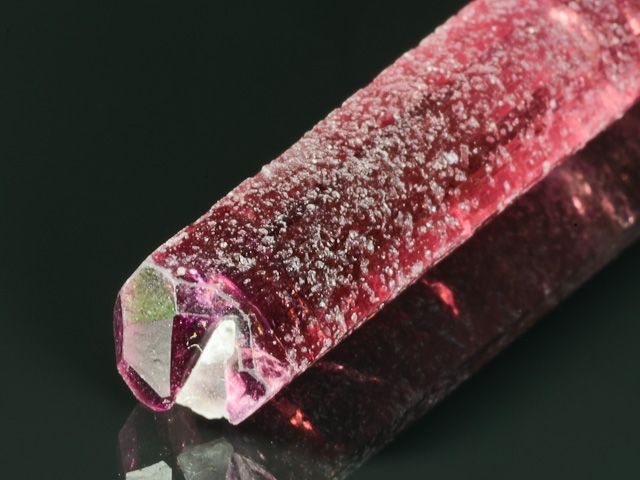 A fine example of the tourmaline variety rubelitte from a find in 2012. It has a beautiful, pink/red color to it. The crystal is highly lustrous, and terminated.