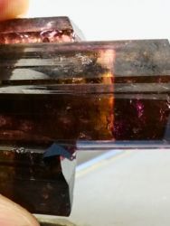 This gemmy, evenly-colored dark pink crystal is a classic color and style for the locality.This gemmy, evenly-colored dark pink crystal is a classic color and style for the locality. However, few truly killer thumbnails have come out compared to larger pieces, and to obtain one of this quality with some distinction or association (such as the albite associated), is quite difficult.