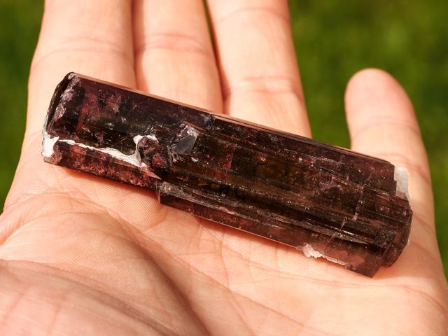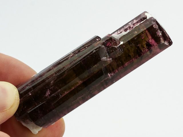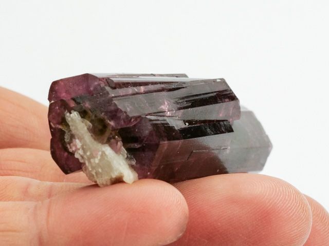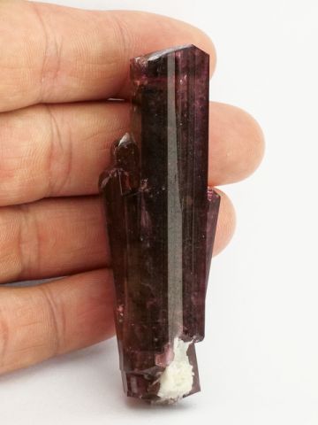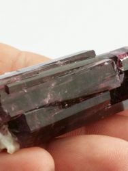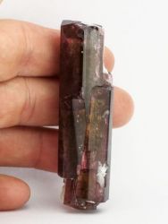 Krásný oboustranně ukončený multikrystal lesklého rubelitu s drobnými albity a slídami stranách krystalu.Krásný oboustranně ukončený multikrystal lesklého rubelitu s drobnými albity a slídami stranách krystalu. Super lesklý krystal příjemné tmavě růžové barvy. Hezký vzorek turmalínu z Madagaskaru do sbírky!