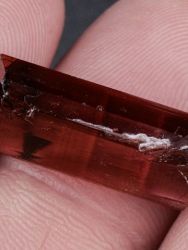 Krásný ukončený krystal lesklého rubelitu z Madagaskaru. Super lesklý krystal příjemné tmavě růžovočervené barvy. Hezký vzorek turmalínu z Madagaskaru do sbírky. Hezký dichroismus v polarizovaném světle. Bez nasvícení tmavší než na fotkách z fotostudia.