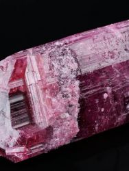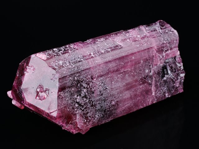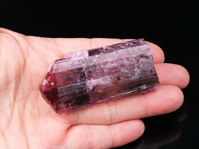 Velmi kvalitní vzorek turmalínu z lokality Malkhan. 72 mm velký krystal rubelitu s perfektním ukončením. Na vzorku je i několik dalších menších turmalínů. Kámen bez opravy. Jen jedna z hran prizmatu má otisk vedlejšího krystalu z dutiny. Vhodný i jako investice - kameny z lokality Malkhan cenově rostou rok od roku raketově vzhůru.