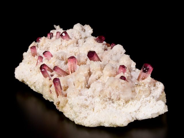 TOP kvalitní vzorek turmalínů a hambergitu na podložce z lokality Malkhan. Více než 30 ukončených krystalů rubelitu na podložce částečně pokryté zeolity. Další krystaly jsou pod drobnou zeolitovou krustou. Kámen ve výborném stavu (jen několik krystalů není vyvinuto) vhodný i jako investice - kameny z lokality Malkhan cenově rostou rok od roku raketově vzhůru, zvláště ty kvalitní.