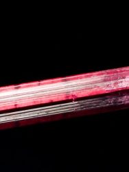 Krásně barevný krystal rubelitu z famózní lokality Jonas Mine. Lesklý neukončený krystal bez pozorovatelného poškození. Krystal má jedinečnou světle malinovou barvu a jeho čistota by místně splňovala top kvality suroviny na broušení. Zajímavý krystal ze světově proslulé lokality.