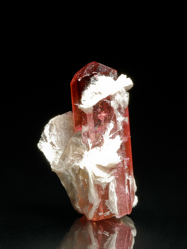 This gemmy, evenly-colored magenta crystal is a classic color and style for the locality.This gemmy, evenly-colored magenta crystal is a classic color and style for the locality. However, few truly killer thumbnails have come out compared to larger pieces, and to obtain one of this quality with some distinction or association (such as the mica associated), is quite difficult.
