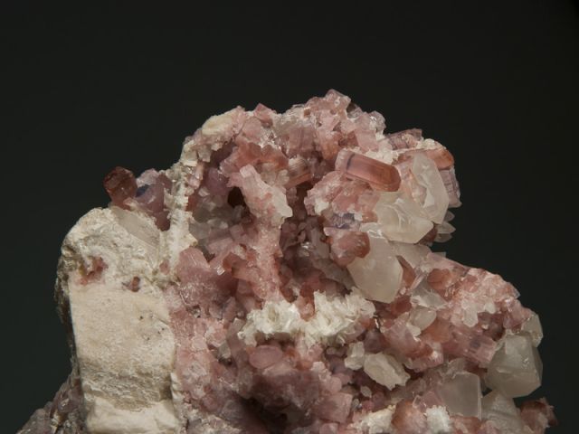 - Rubelit, křišťál a albit