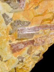 Elongated lustrous pink tourmaline crystals to 20 mm on terminated smoky quartz crystal.Elongated lustrous pink tourmaline crystals to 20 mm on terminated smoky quartz crystal. The rubellites are relatively lustrous and mostly terminated.