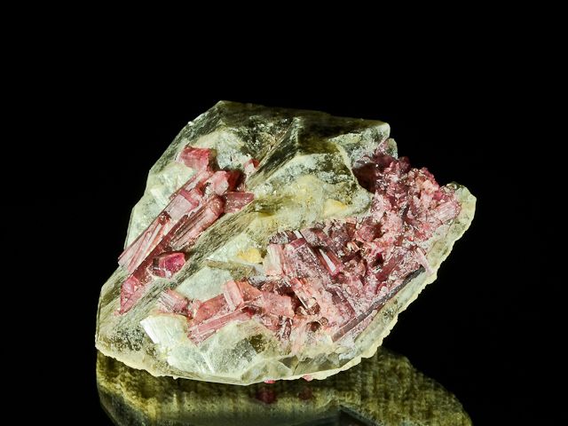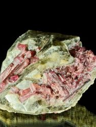 Velmi kvalitní vzorek turmalínů na záhnědě z lokality Malkhan. Až 27 mm velké krystaly rubelitu na 8,4 cm velkém oboustranně ukončeném krystalu křemene (záhnědy). Na zadní nepohledovou stranu záhnědy přirůstá souvislá vrstvička zeolitů. Nepoškozený sbírkový vzorek (pouze jeden drobný kontakt) vhodný i jako investice - kameny z lokality Malkhan cenově rostou rok od roku raketově vzhůru.
