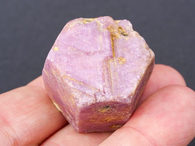 Velmi pěkný velký krystal rubínu (korund) z tanzanské lokality Geiro. Jedná se o sytě růžový rubín ze zajímavé africké lokality. Krystal je lesklý a dobře pravidelně vyhraněný.