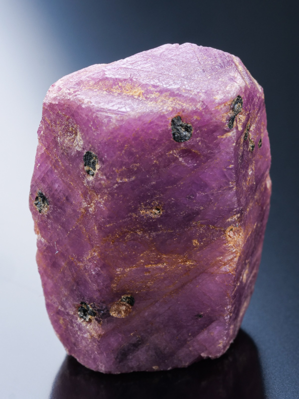 Velmi pěkný velký krystal rubínu (korund) z tanzanské lokality Geiro. Jedná se o sytě růžový rubín ze zajímavé africké lokality. Krystal je lesklý a dobře pravidelně vyhraněný.
