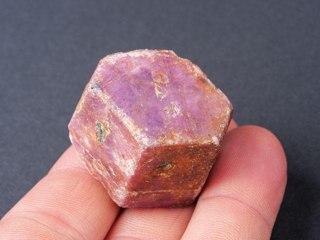 Velmi pěkný krystal rubínu (korund) z tanzanské lokality Geiro. Jedná se o růžový rubín ze zajímavé africké lokality. Krystal je lesklý a dobře pravidelně vyhraněný. Váha 57,8 g!!!