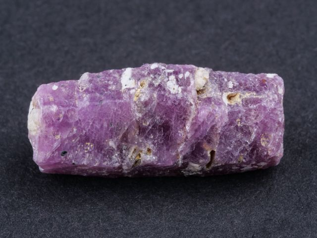 Tapered crystal of violet-red corundum, variety ruby - from recent finds at Morogoro. The crystal has classic hexagonal form and show only minor wear.