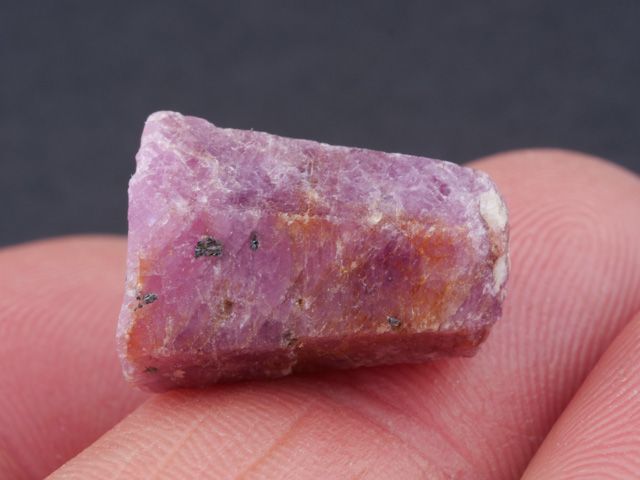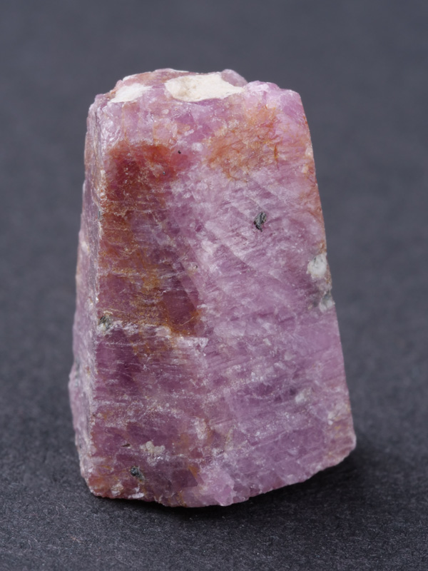 Tapered crystal of violet-red corundum, variety ruby - from recent finds at Morogoro. The crystal has classic hexagonal form and show only minor wear.