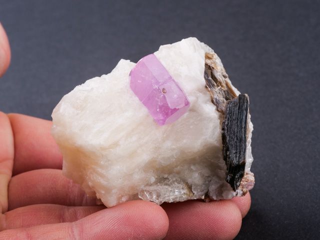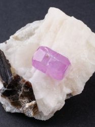 TOP krystal rubínu na podložce z tanzanské lokality Winza. Jedná se o jeden světle růžový rubín na podložce ze zajímavé africké lokality. Krystal na podložce je krásně lesklý, tvarovaný a oboustranně ukončený. Krystal měří 16 mm a krásně svítí v UV světle. Na kalcitové podložce najdete i krystaly slídy o velikosti do 25 mm. Jedná se o jeden z nejlepších vzorků rubínu z Tanzánie, který jsme kdy viděli. Podobný vzorek už s největší pravděpodobností nikdy nebude v nabídce.