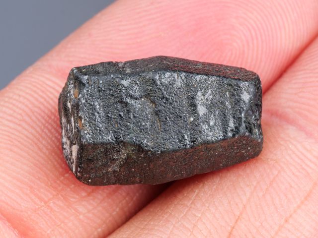 Attractive blue sapphire crystal, the colored gem variety of the mineral species corundum.Attractive blue sapphire crystal, the colored gem variety of the mineral species corundum, with hexagonal di-pyramidal form composed of stepped crystal faces. The sapphire has bands of deeper blue color alternating with pale zones. This was specimen recovered from an alluvial deposit and the edges show wear, but the crystal form is distinct.