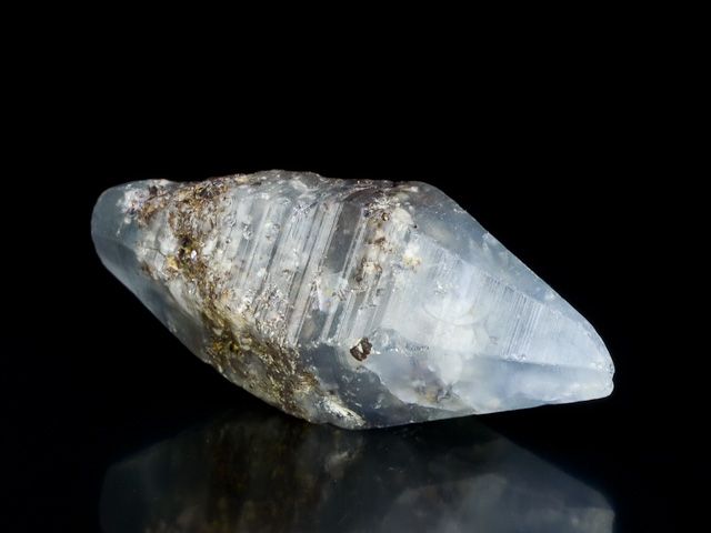 Světle modrý vřetenovitý krystal safíru z lokality Ratnapura. Luxusně tvarovaný krystal s hedvábným leskem, zajímavou zonálností a slušnou čistotou v tenkých částech krystalu. Krystal má 3 jemné setření (jedno v nejtenčí části ukončení). Ukončený krystal vhodný do luxusní sbírky.
