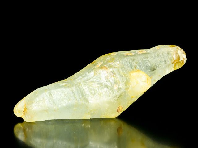 Světle modrý vřetenovitý krystal safíru z lokality Ratnapura. Zvláštně tvarovaný krystal s nevýrazným leskem, zajímavou vnitřní strukturou a dobrou čistotou. Krystal má dvě velice jemné setření, ale tyto jsou na první pohled nezjistitelná. Velký oboustranně ukončený krystal vhodný do luxusní sbírky.
