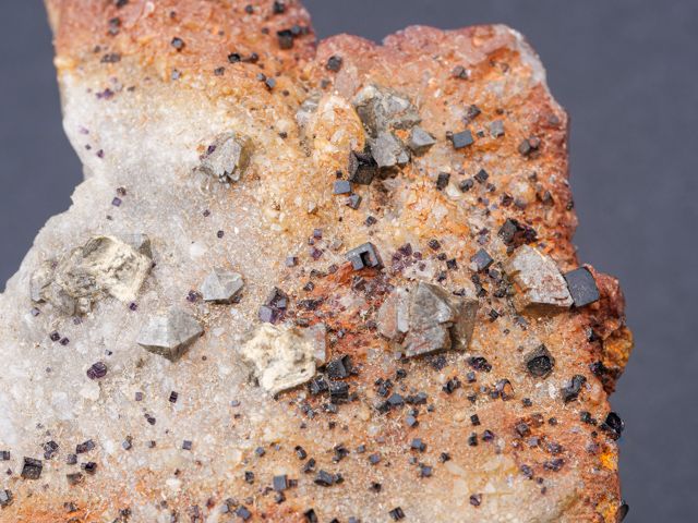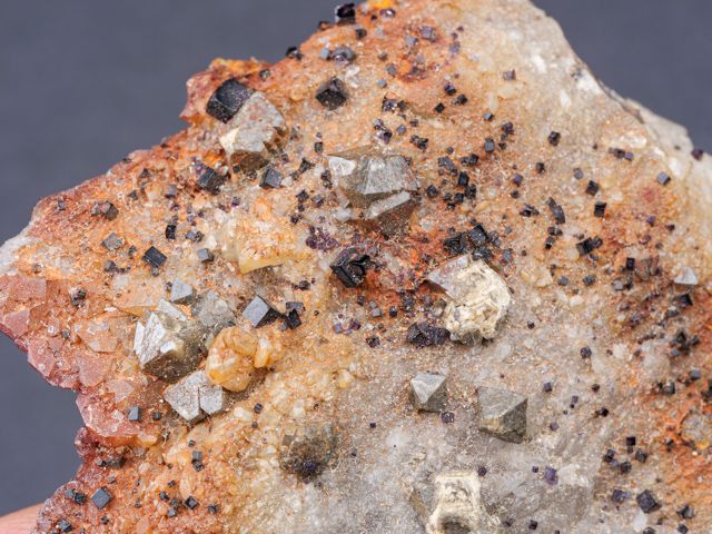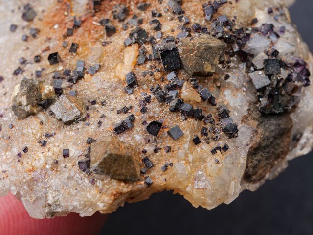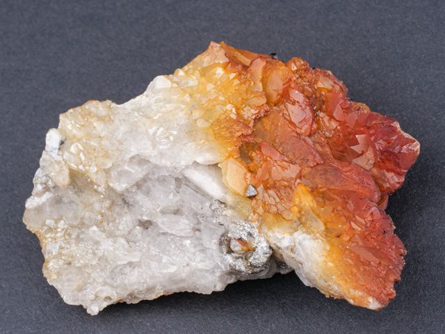 Opravdu velmi pěkný vzorek scheelitu společně s fluoritem a křemenem z fenomenální lokality Cínovec.Opravdu velmi pěkný vzorek scheelitu společně s fluoritem a křemenem z fenomenální lokality Cínovec. Největší krystal fluoritu měří 2 mm, ale v kombinaci s scheelity o velikosti až 6 mm se jedná o bohatou krásnou kombinaci na jednom vzorku. Křemen je z poloviny krásně zbarvený oxidy železa.