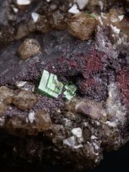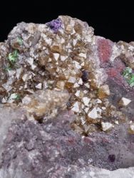 Pěkný vzorek scheelitu na záhnědě z fenomenální lokality Cínovec.Pěkný vzorek scheelitu na záhnědě z fenomenální lokality Cínovec. Krystalky scheelitu jsou o velikosti do 2 mm a pokrývají velkou část krystalu křemene. Navíc najdete na vzorku i několik krystalů zeuneritu o velikosti do 1,5 mm. Sběr cca r. 1970 - originální etiketa součástí položky.