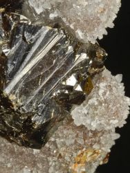 A striking, bright big Sphalerite is perfectly presented on a bed of druzy quartz.A striking, bright big Sphalerite is perfectly presented on a bed of druzy quartz. A dark reddish brown ball at first glance, with backlighting, this glows intense red. Excellent condition, the 2.9 cm diameter crystal cluster is mostly gemmy. This mine has been the source of many Sphalerites, but this is far, far better than most.