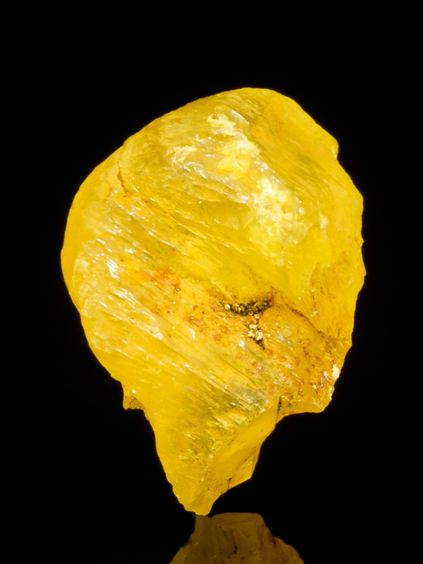 A sharp, gem-like, transparent, golden-yellow, sulfur crystal from Vodinskoye, Russia. This tabular crystal is complete all-around and is nearly pristine, with only trival edgewear in one spot. Classic, seldom available Russian material.