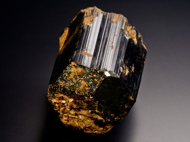 Terminated dark-black/brown Schorl crystal. The tourmaline crystal has lustrous crystal faces.
