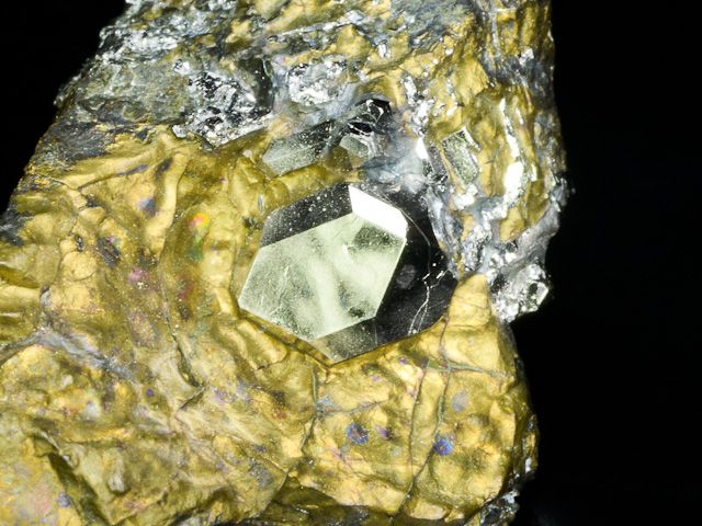 Malý ale o to zajímavější vzorek sperylitu z ruské lokality Talnakh. Sperylit na vzorku vytváří několik samostatných extrémně lesklých krystalů o velikosti největšího krystalu 7,3 mm. Jedná se o ideální investiční vzorek vzhledem k vzácnosti tohoto minerálu i ceně platiny jako takové. Sperylit je jedním z mála minerálů platiny a je velmi vyhledávaný sběrateli, protože patří mezi vůbec nejvzácnější.