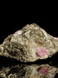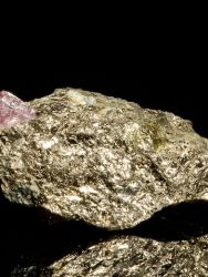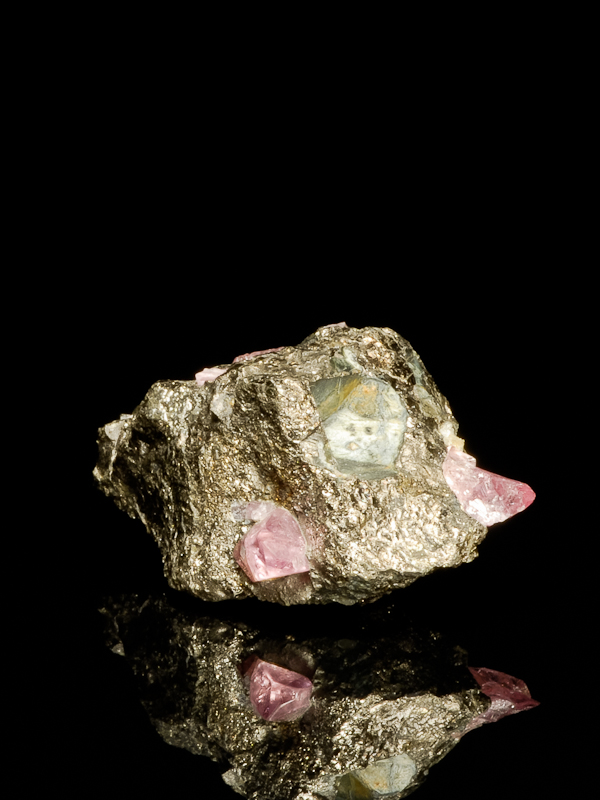 A beautiful gem spinel crystals atop a perch of massive pyrrhotite, from the old find in Tajikistan.A superb single 6.5 mm gem crystal atop a perch of massive pyrrhotite, from the old find in Tajikistane. There are two other spinel crystal on the matrix - unfortunately incomplete. I had never seen spinel on pyrrhotite (or other sulfides) from anywhere. These gem crystals have a unique lavender hue that sets them apart from other spinels we have seen out of Mogok and Sri Lanka.