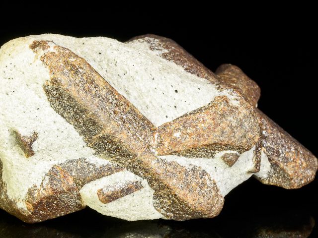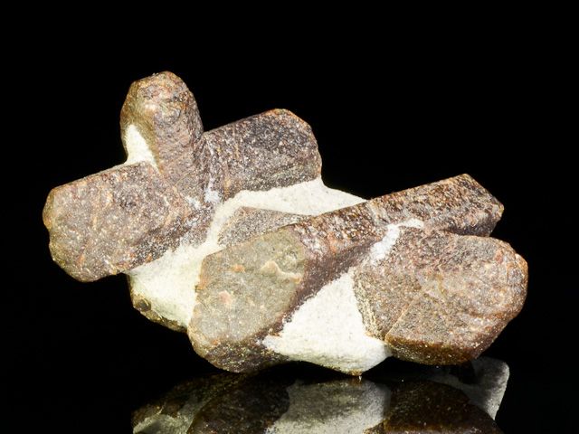 Překrásně zdvojčatělé krystaly staurolitů vrostlé ve slídnatých svorech z Kejvy na poloostrově Kola v Ruské Federaci.Překrásný vzorek se staurolitovými kříži ze světově věhlasné lokality za polárním kruhem. Tyto zdvojčatělé krystaly staurolitů vrostlé ve slídnatých svorech pochází z Kejv na poloostrově Kola v Ruské Federaci. Největší krystal měří 4,7 cm. Dvojčata staurolitů vzácně srůstají pod úhlem 60-ti nebo 90-ti stupňů. Kromě 3 úžasných křížových srostlic je na vzorku i několik dalších krystalů menších velikostí. Tímto jedinečným vzorkem si udělá radost každý milovník minerálů a vzácných srostlic krystalů.