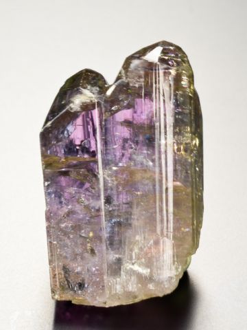 Exkluzivní lesklý krystal tanzanitu z lokality Merelani v Tanzánii. Krystal je ukončený s velmi zajímavou jemnou barvou. Krystaly této kvality jsou z této lokality ceněny i pro jejich barvoměnu - z čelní strany jsou krásně šedomodré, zatímco z boční strany jsou fialkově fialové.