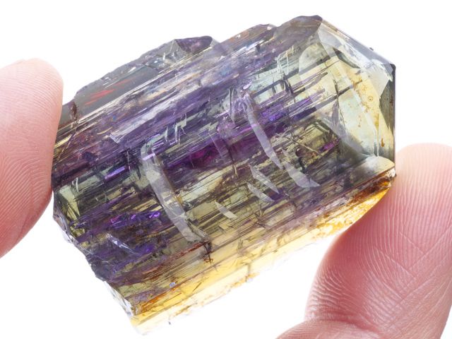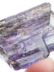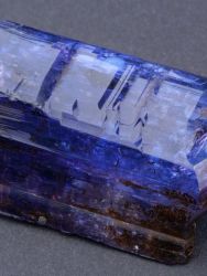 Exkluzivní velký a lesklý krystal tanzanitu z lokality Merelani v Tanzánii. Krystal je ukončený a čistý. Tento konkrétní kámen je zvláštní a zajímavý tím, že osou C prochází 4 kanálky nebo chcete li dírky. Nejdelší dírka o trojúhelníkovém průřezu (cca 6x2 mm) má délku 23 mm. Odhadovaná váha brousitelné suroviny je do 3 g. Krásně viditelný trichroismus. Trichroismus znamená, že pod různými úhly pod polarizovaným světlem mění svou barvu, tepelně neupravený tanzanit tedy může mít kromě modré i barvu fialovou, červenou, hnědou či zelenou a žlutou.
