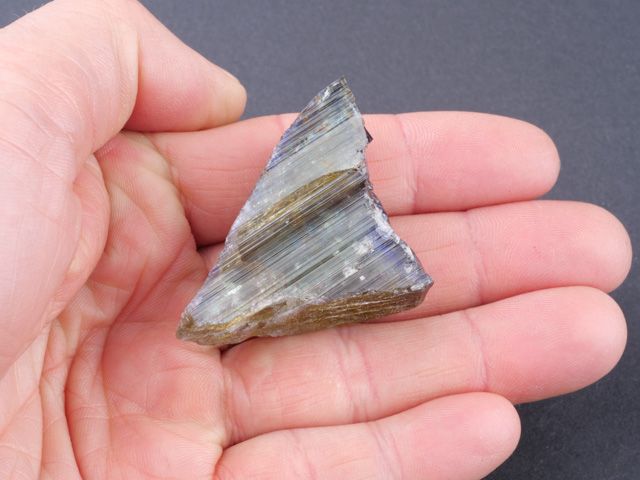 Opravdu velký lesklý krystal tanzanitu z lokality Merelani v Tanzánii. Krystal je ukončený a v dobrém stavu. Při průsvitu polarizovaným světlem krásně mění barvy. 2 fotky, kde vidíte zvláštně modrou barvu jsou pořízeny právě skrze polarizovaný zdroj světla (monitor, dispej smartphonu,...).