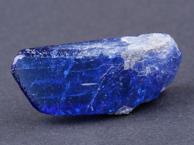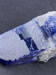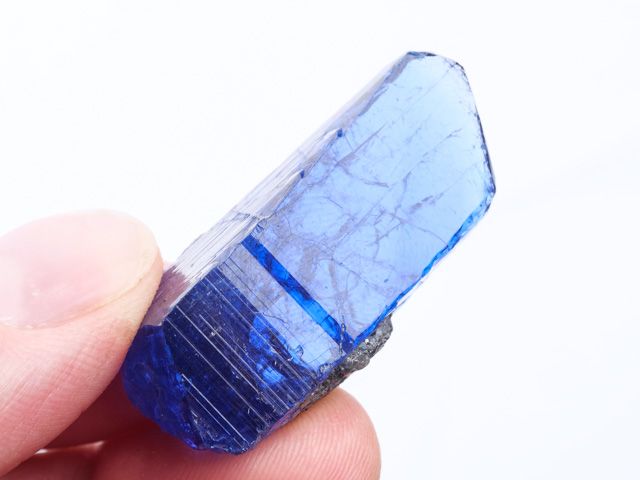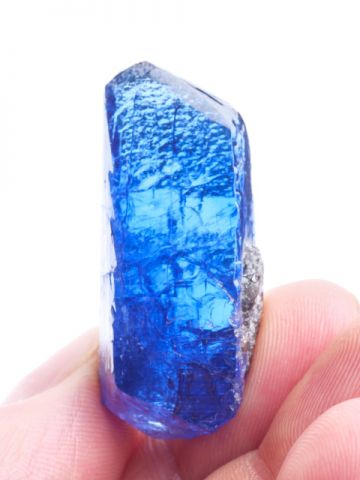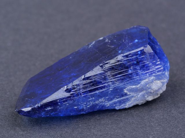 Exkluzivní velký a lesklý krystal tanzanitu z lokality Merelani v Tanzánii. Krystal je ukončený a velmi čistý. Krystaly této kvality jsou z této lokality ceněny i pro jejich barvoměnu - z čelní strany jsou krásně šedomodré, zatímco z boční strany jsou fialkově fialové. Kámen v super provedení. Barevně se na přírodním světle může krystal lišit oproti fotografiím pořízených ve fotostudiu.